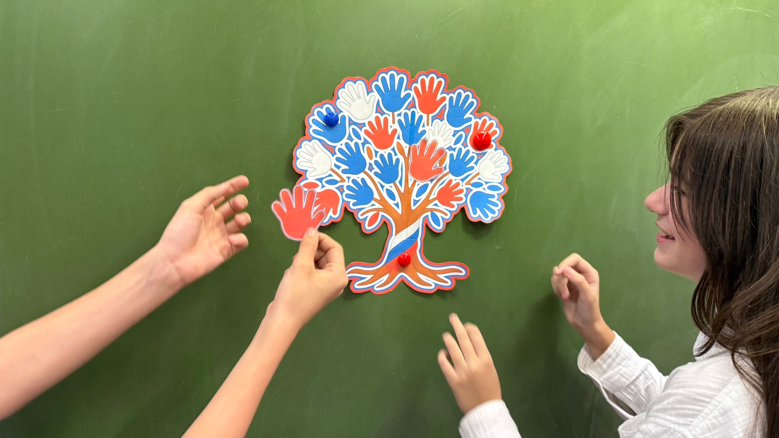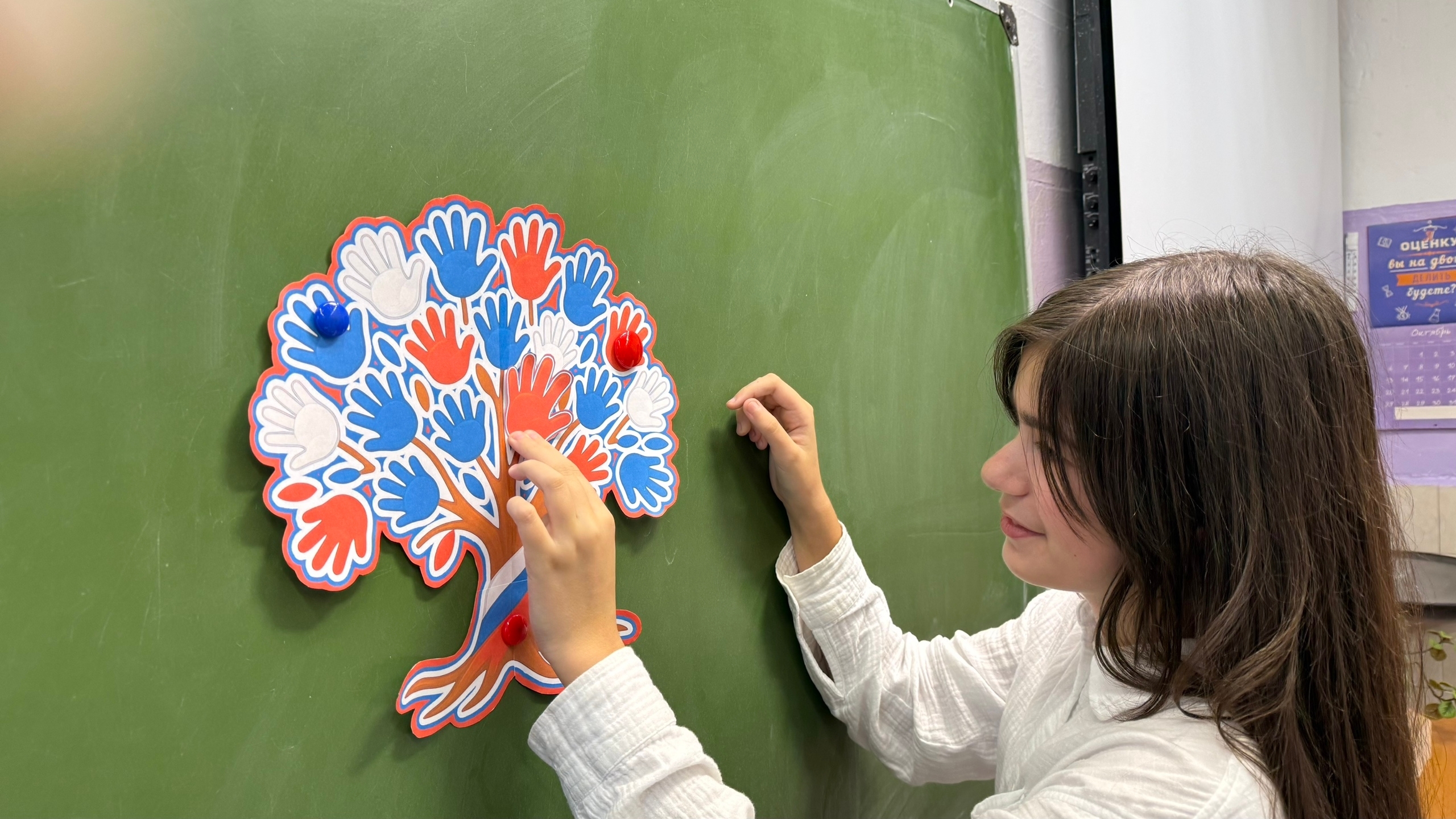 В качестве символа единства ребята использовали ладонь, которая олицетворяет открытость и готовность поддерживать друг друга. Создали коллективный арт, где ладони размещены на ветвях дерева, подчеркивая разнообразие и силу нашего народа. Этот небольшой проект станет напоминанием о важности единства в нашем обществе.