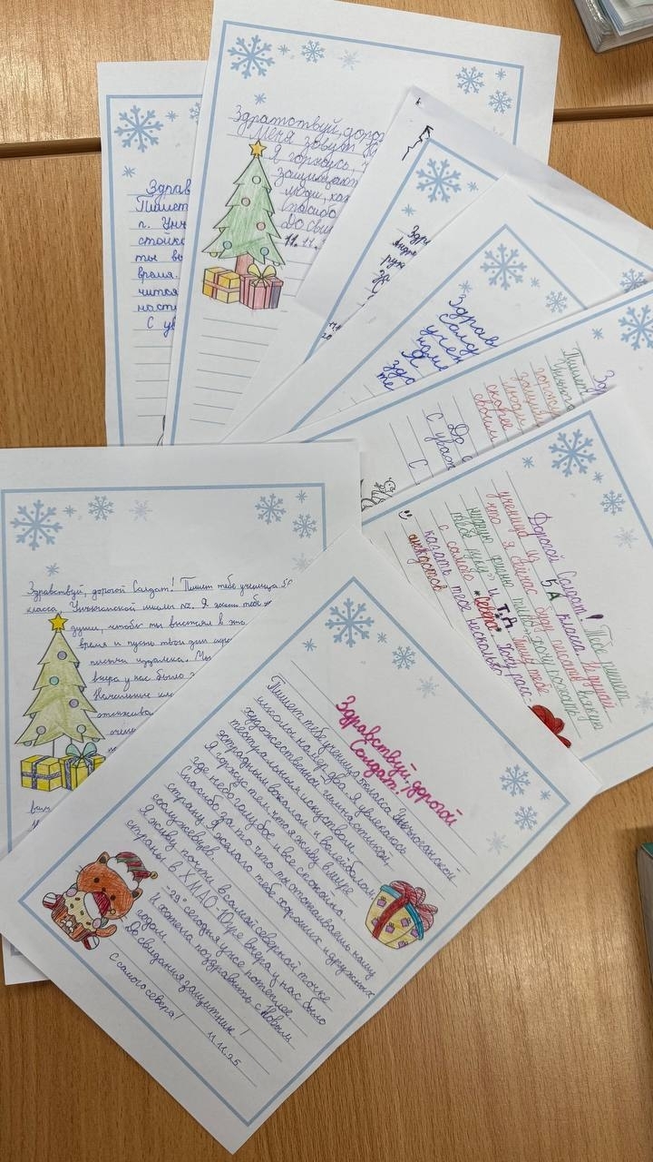 Но главное — это наши искренние письма! Ребята от всей души писали солдатам поздравления с наступающим Новым годом, желали им здоровья, сил и скорейшего возвращения домой. В каждый конверт мы вложили частичку своего тепла и веру в их победу.